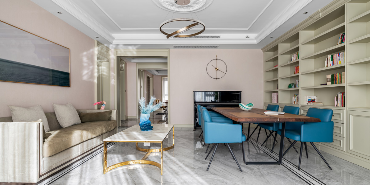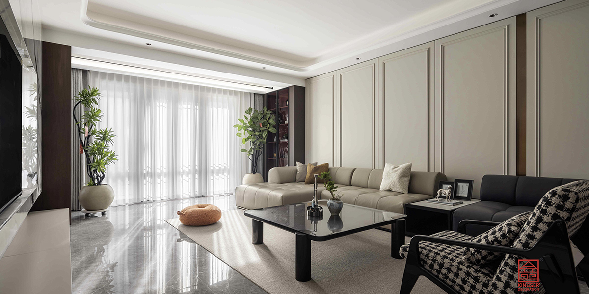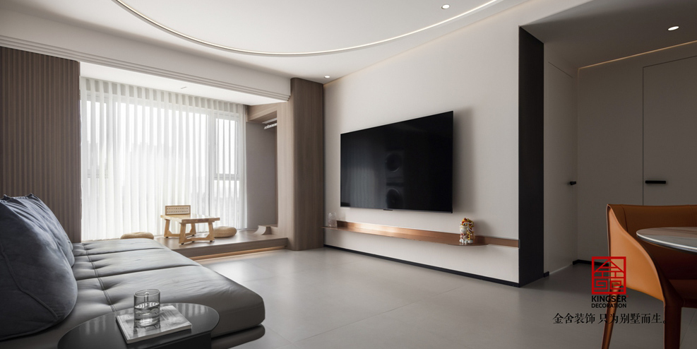 客廳采用磁吸軌道無主燈設(shè)計+定制燈帶,以舒適合理的線條,引領(lǐng)室內(nèi)氛圍光,拉伸層高,擴(kuò)充格局,讓業(yè)主真正感受私人訂制設(shè)計之美。