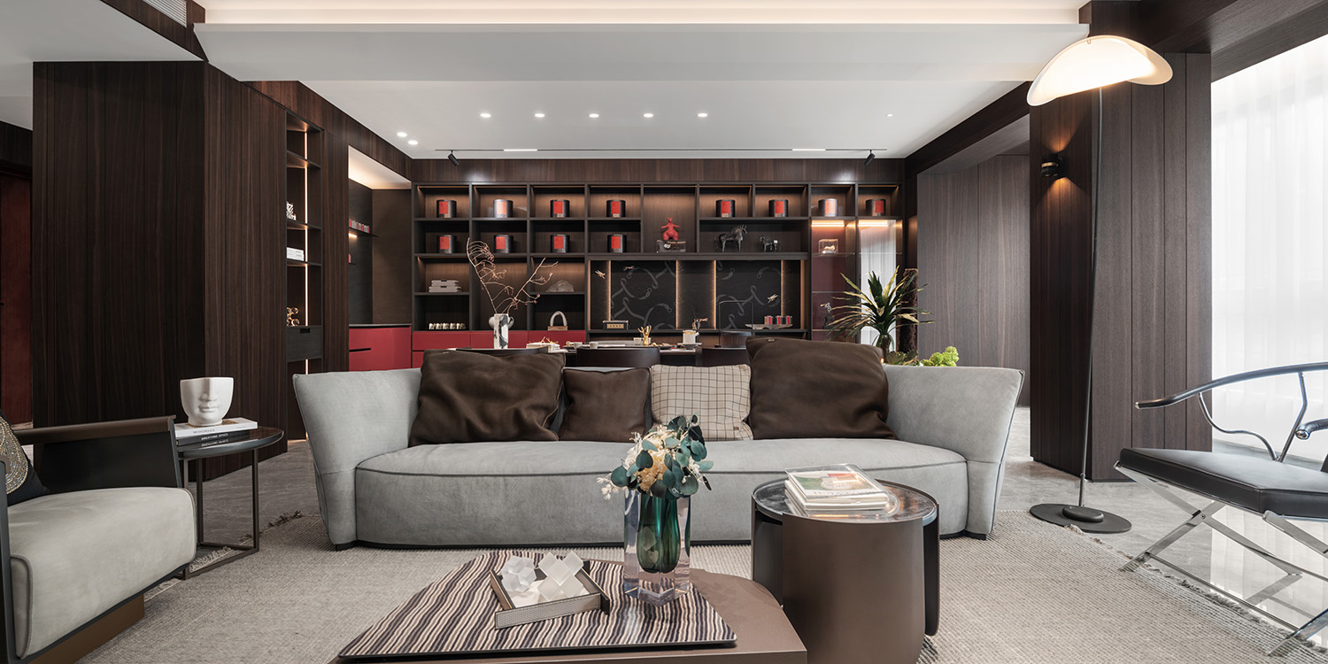 本案在配色上深邃又冷靜,完全契合業(yè)主對于新家的設(shè)定,設(shè)計師將居住者的需求與情懷融于一體,賦予空間更加鮮明的性格